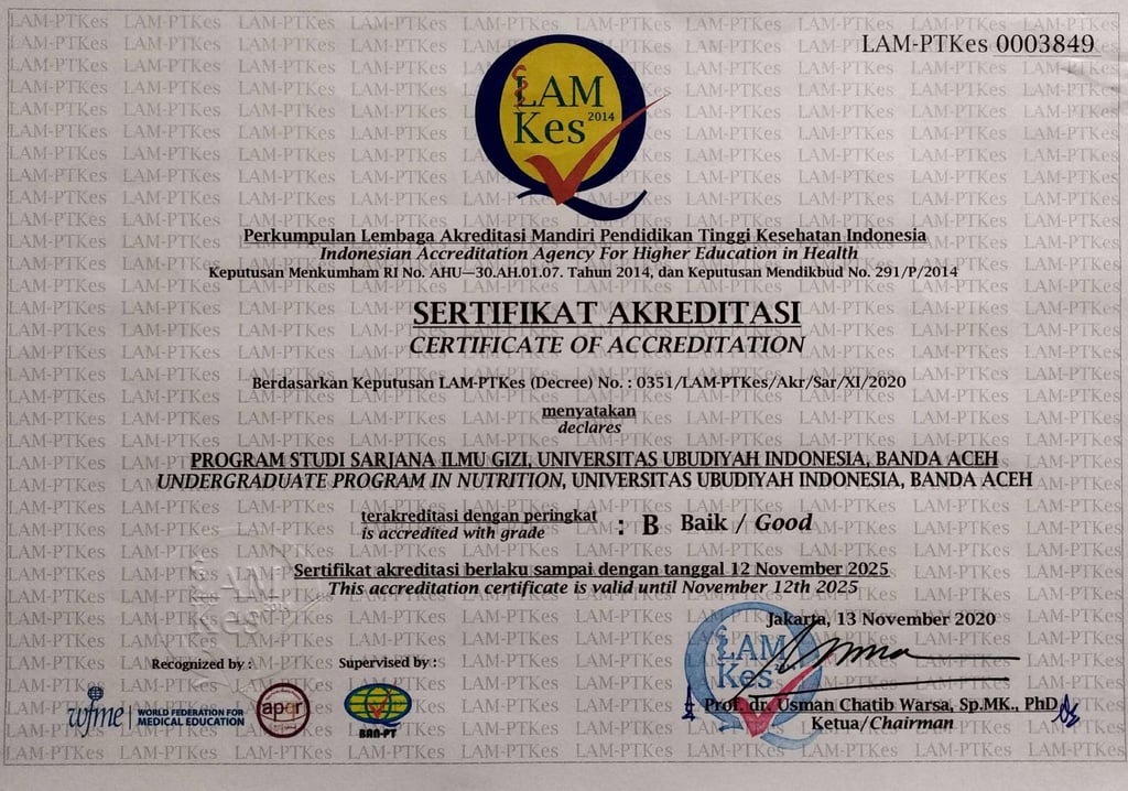SERTIFIKAT AKREDITASI PROGRAM STUDI ILMU GIZI